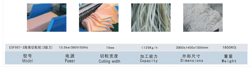 • 適用于將海綿、裥綿(帶布的海綿)、噴膠綿等切成比較規則的顆粒形狀。(長短3-30mm可調)